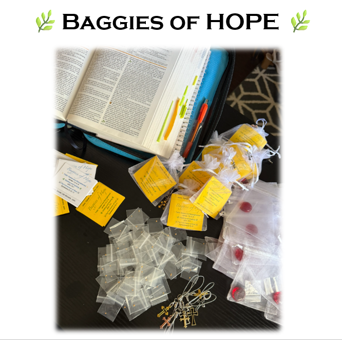 Your gift provides Baggies of Hope, Bibles, and The Freedom Journey Devotionals to those in need spiritually and physically.